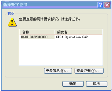 將USBKEY插入電腦后提示選擇相應數(shù)字證書: