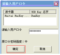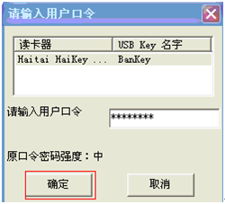點擊“確定”后提示輸入USBKEY的口令: