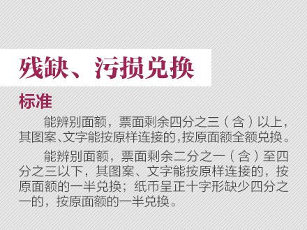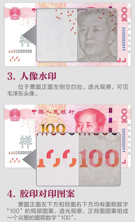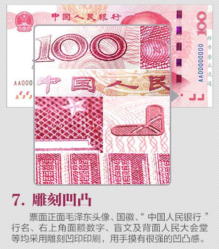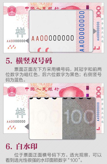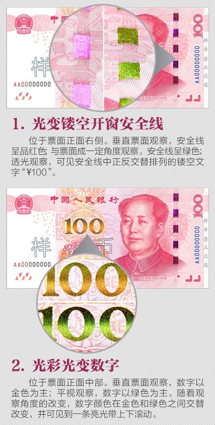 為更好地保護(hù)人民幣持有人的利益,需要根據(jù)科學(xué)技術(shù)的發(fā)展,不斷提高鈔票的防偽技術(shù)和印制質(zhì)量,保持人民幣防偽技術(shù)的領(lǐng)先地位。為此,中國人民銀行發(fā)行了2015年版第五套人民幣100元紙幣,在保持規(guī)格、主圖案、主色調(diào)等與2005年版第五套人民幣100元紙幣不變的前提下,對票面圖案、防偽特征及其布局進(jìn)行了調(diào)整,提高機(jī)讀性能,采用了先進(jìn)的公眾防偽技術(shù),更易于識別真?zhèn)巍?015年版第五套人民幣100元紙幣發(fā)行后,與同面額流通人民幣等值流通。 那么,新版人民幣的防偽特征有哪些?如何識別假鈔?殘缺、污損的人民幣要如何兌換?本文將帶你了解關(guān)于人民幣識別、兌換等最實(shí)用的知識。 ![]() ![]() ![]() ![]() ![]() ![]() ![]() ![]() ![]() ![]() 掃一掃 識別二維碼 可參與反假幣答題 還有機(jī)會贏好禮